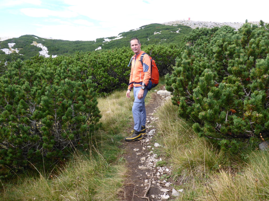 Schließlich erreichen wir eine Kammhöhe und erblicken nun tatsächlich in nicht allzu weiter Ferne unser Ziel. Am Ende passieren wir noch eine Latschengasse (wie bei uns in den Alpen) und kurz darauf stehen wir auf dem höchsten Berg von Kroatien.