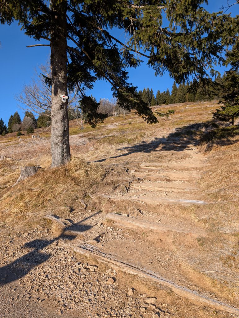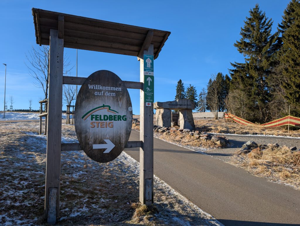 Am Parkhaus vorbei Richtung Skihang, halten wir uns vorm Haus der Natur links und erreichen schon bald den Start des Feldbergsteigs.