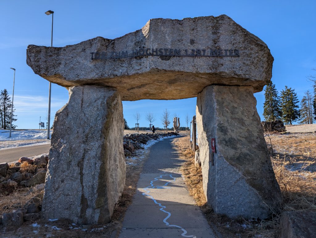 Wir durchschreiten ein markantes Steintor. Der Schriftzug darauf verrät, es ist das „Tor zum Höchsten“, wie der Feldberg auch oft genannt wird.