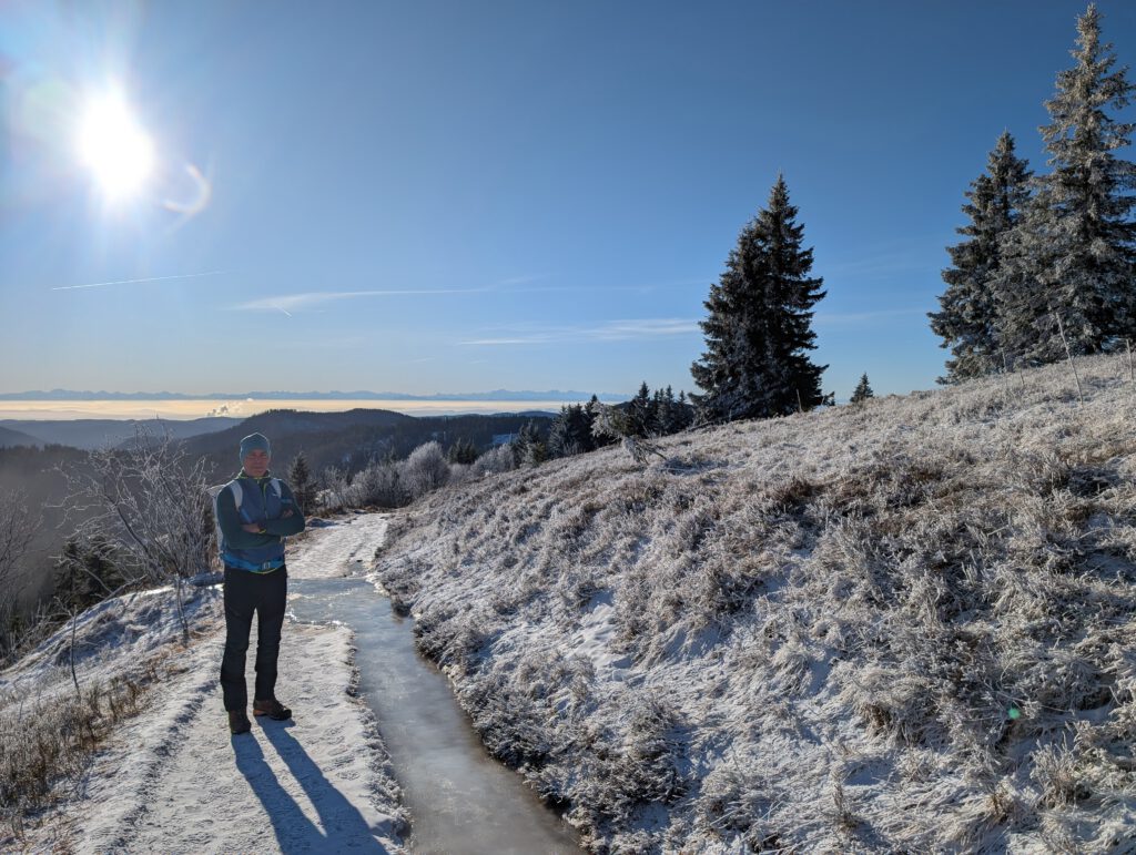 Von München aus sind es mehr als 450 Kilometer in den Südschwarzwald und so beschließen wir, die Besteigung des Feldbergs mit ein paar Tagen Urlaub in der Region zu verbinden. Wir übernachten in einem gemütlichen Hotel in Fahl. Von hier aus haben wir es nicht weit bis zum Feldberg und einigen anderen schönen Bergtouren. Der letzte Tag des Jahres hält perfektes Wetter für uns bereit und so beschließen wir, als allererstes den Feldberg in Angriff zu nehmen.