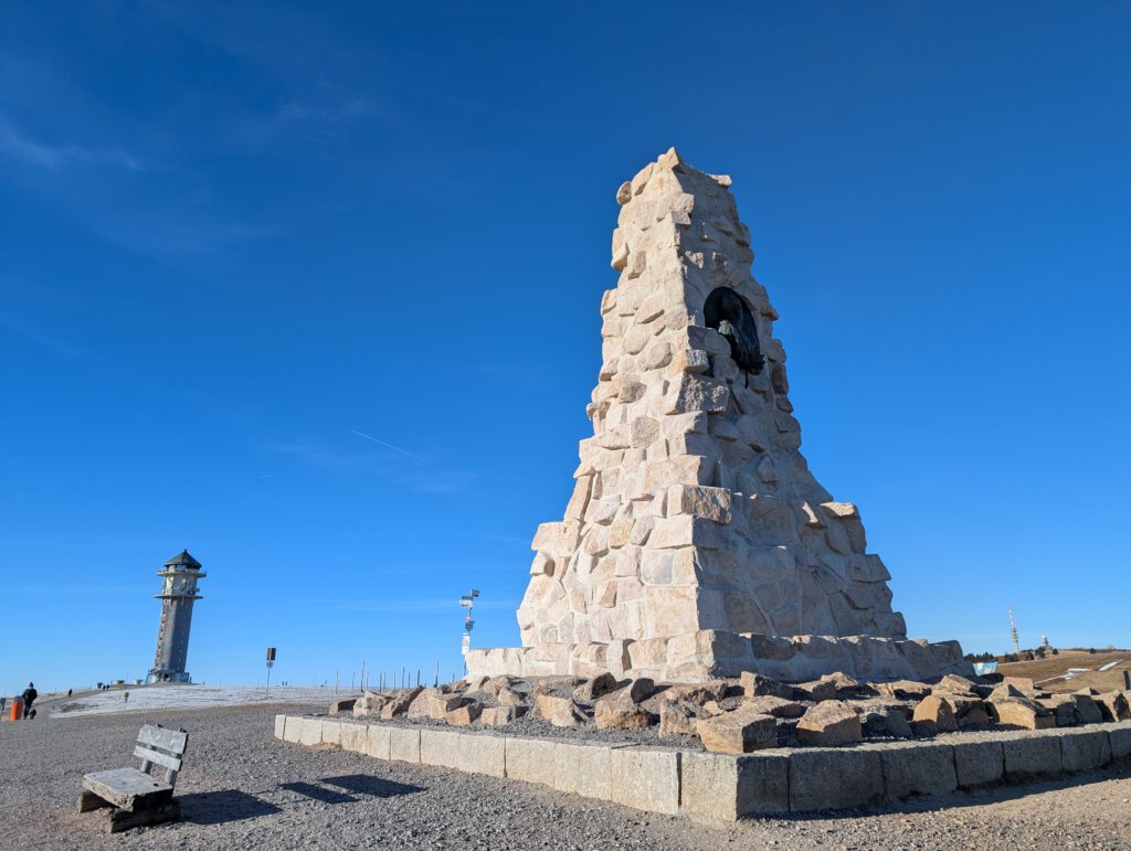 Nach etwa 30 Minuten erreichen wir ein großes Denkmal. Im Dezember 1896 wurde es als erstes Bismarckdenkmal Badens eingeweiht. Wie auch der Feldbergturm gehört es heute zu den Wahrzeichen des Feldbergs. Es steht auf dem zweithöchsten Gipfel des Schwarzwalds, dem Seebuck auf 1449 Metern.