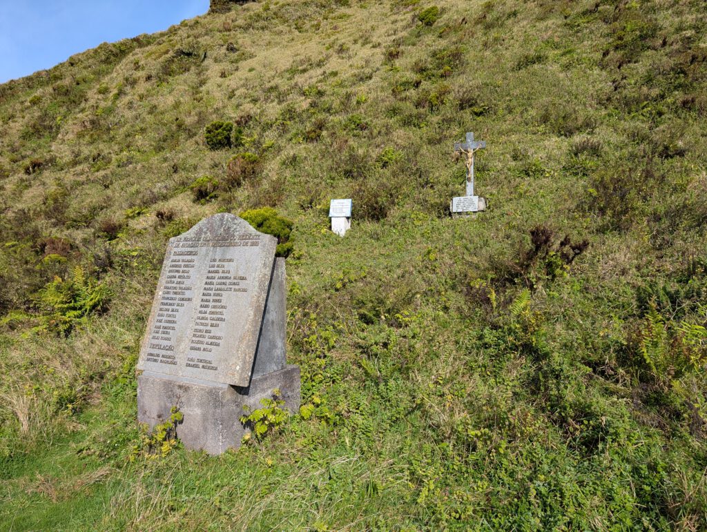 Dann erreichen wir am Südhang des Morro Pelado ein Denkmal. Es erinnert an den tragischen Flugzeugabsturz im Dezember 1999. 35 Menschen sind hier ums Leben gekommen, als das Flugzeug mit dem Vulkan kollidierte und abstürzte.