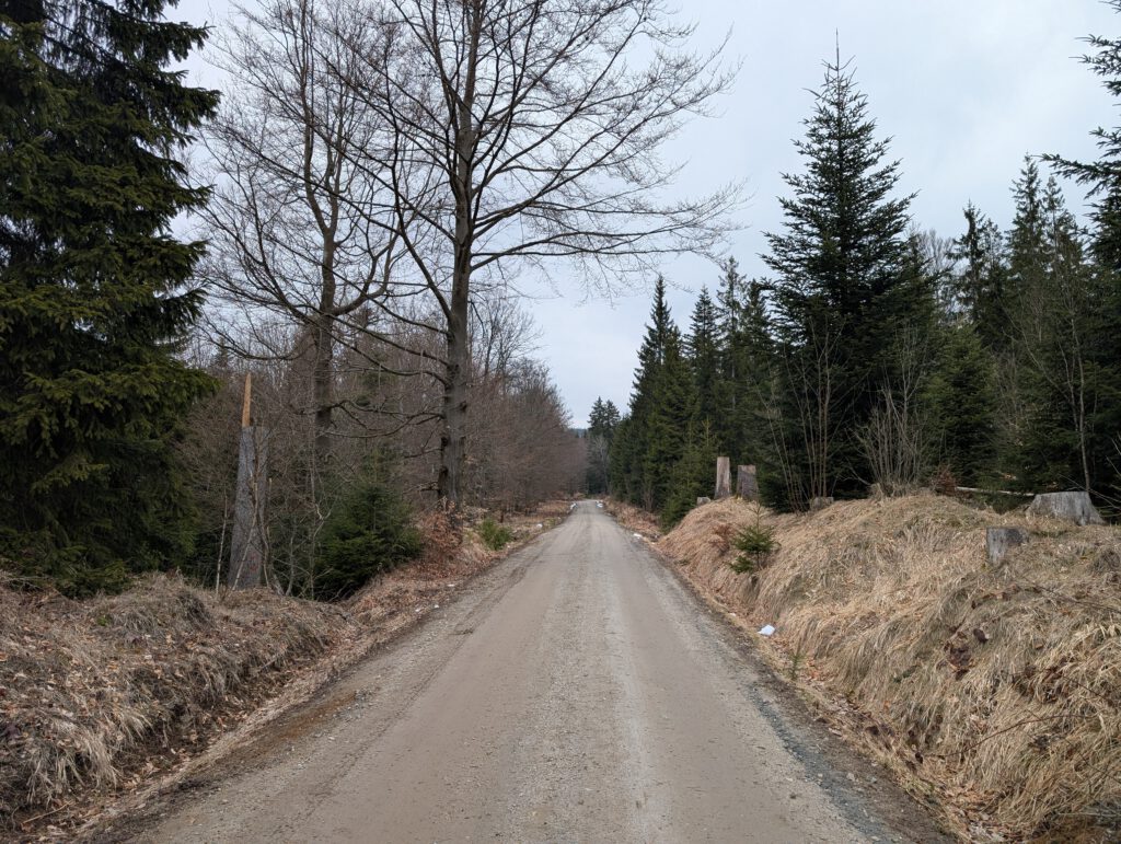 Also los geht’s. Für die ersten zwei Kilometer folgen wir dem breiten und nur wenig steilen Waldweg.