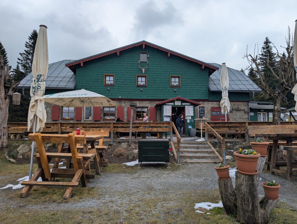 Dann erreichen wir das auf 922 Metern gelegene gemütliche Seehaus, eine beliebte und liebevoll mit Osterdeko geschmückte Hütte, wo wir nochmal einkehren und uns aufwärmen.
